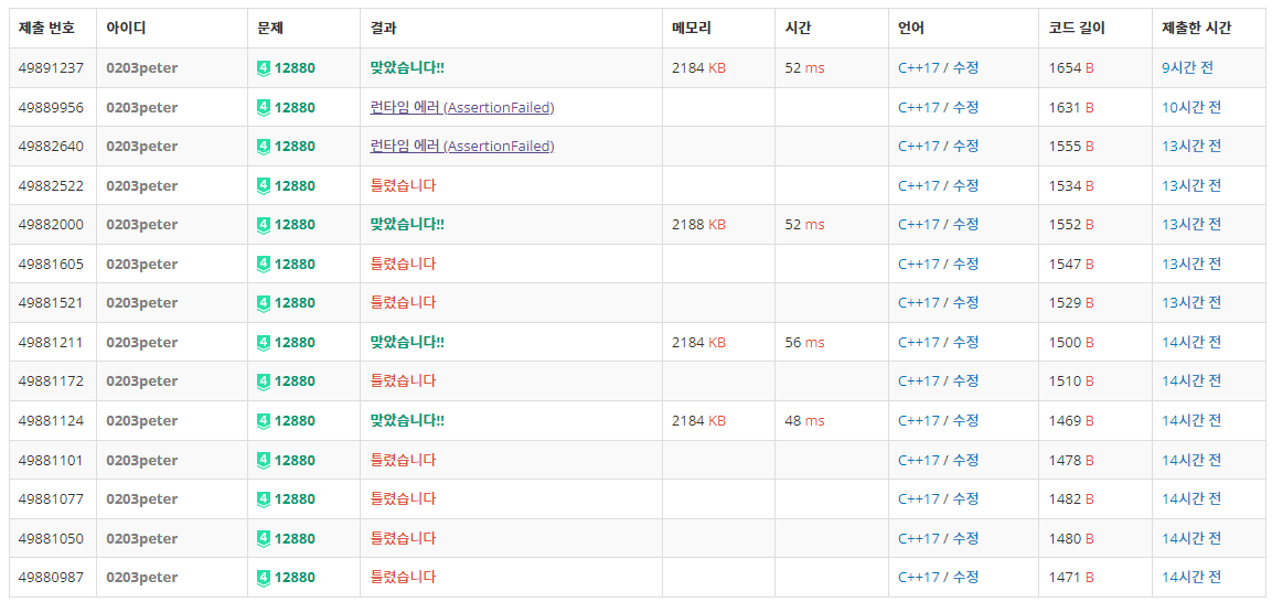 보다시피.. 계속해 놓치던 반례가 있어 많은 WA를 받게 되었다.